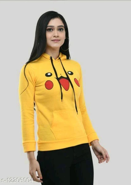 Printed Women Pure Cotton Solid Hooded Sweatshirt